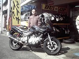 お客様画像一覧 ランドナーでは、タイヤ交換をされたお客様と愛車の2ショットを撮影し、 ご了解を得て画像にしてUPしています。下記は、その一部の画像です。 (個人情報保護の為、画像は鮮明にはなりません) ※ご自分のバイクが当店で作業出来るかどうかは、 この画像を見てご判断下さい。上からNEW!です。※ 『タイヤ交換してくださったお客様の皆さん!愛車との2ショット画像は 見つかりましたか?この写真が欲しい方はプレゼント致しますので、 次回、ご来店時にオーナーにお伝え下さい(^^)♪』 |